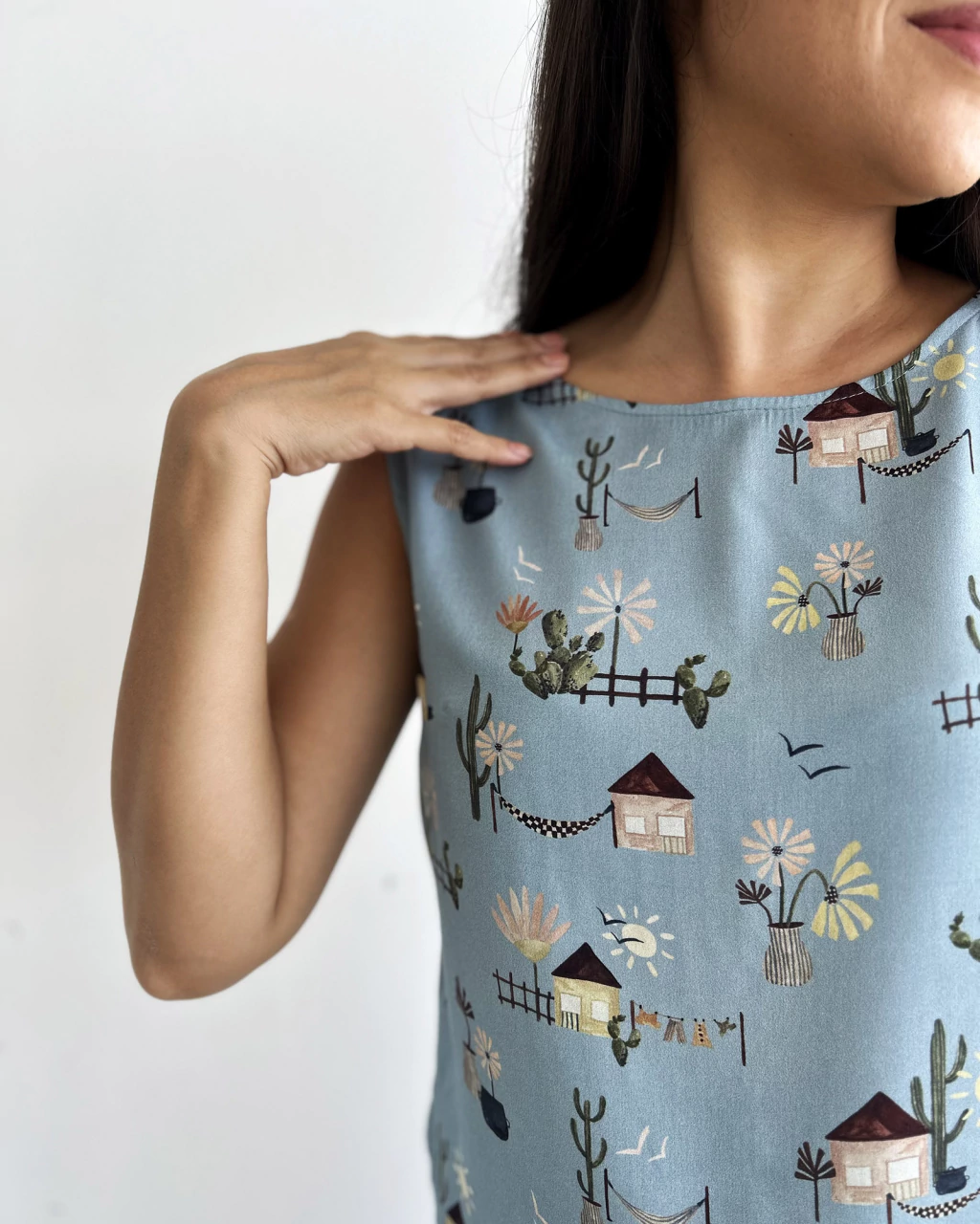 Conheça nossa Regata na nova estampa Nosso Quintal, que retrata a simplicidade da vida na infância. De forma lúdica, ele traz elementos comuns da cultura Nordestina, de forma lúdica e com um toque de nostalgia.