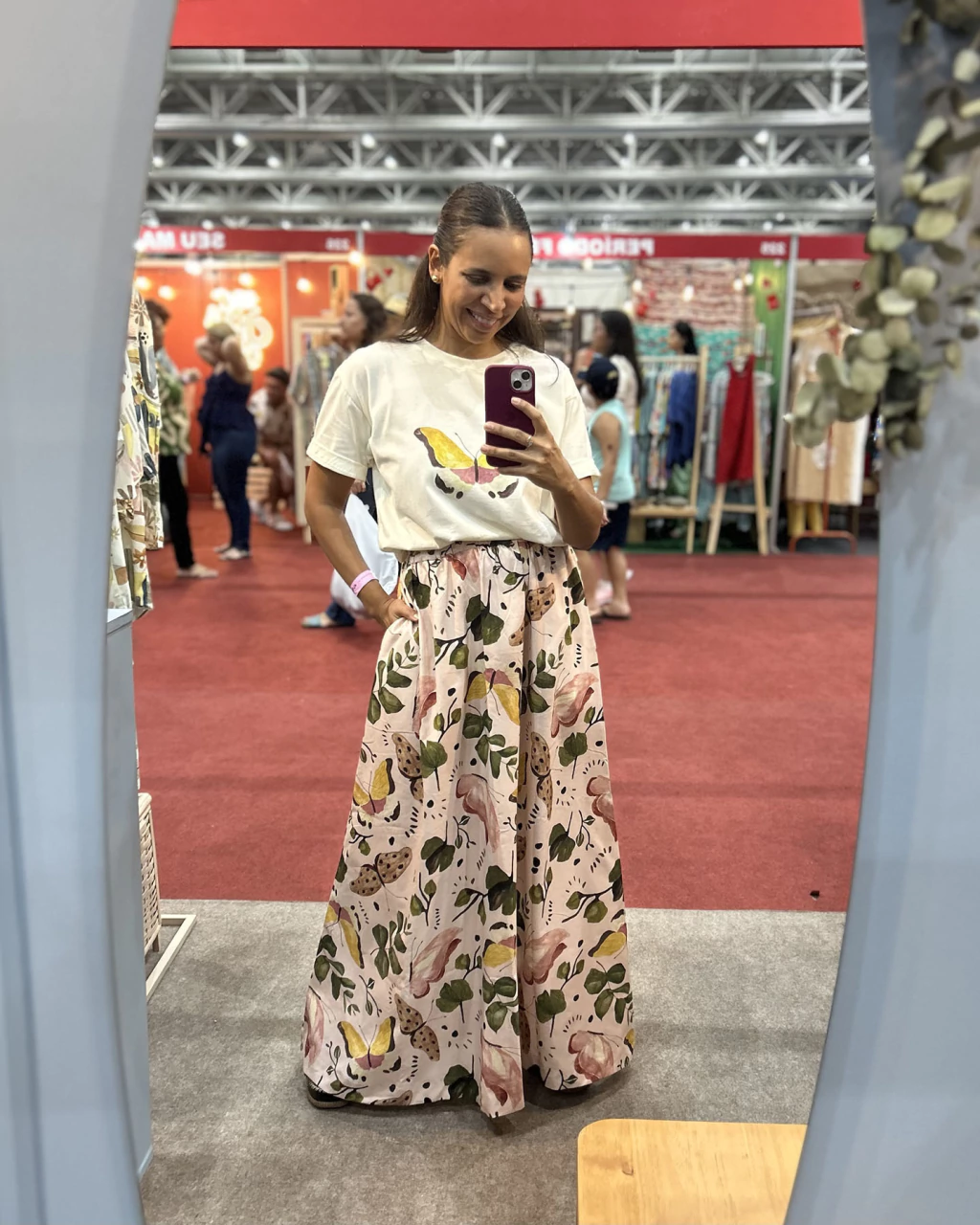 Uma peça que por si causa impacto no primeiro olhar, vestida da estampa Borboletas, se torna um convite ao olhar sensível e à celebração da beleza natural.