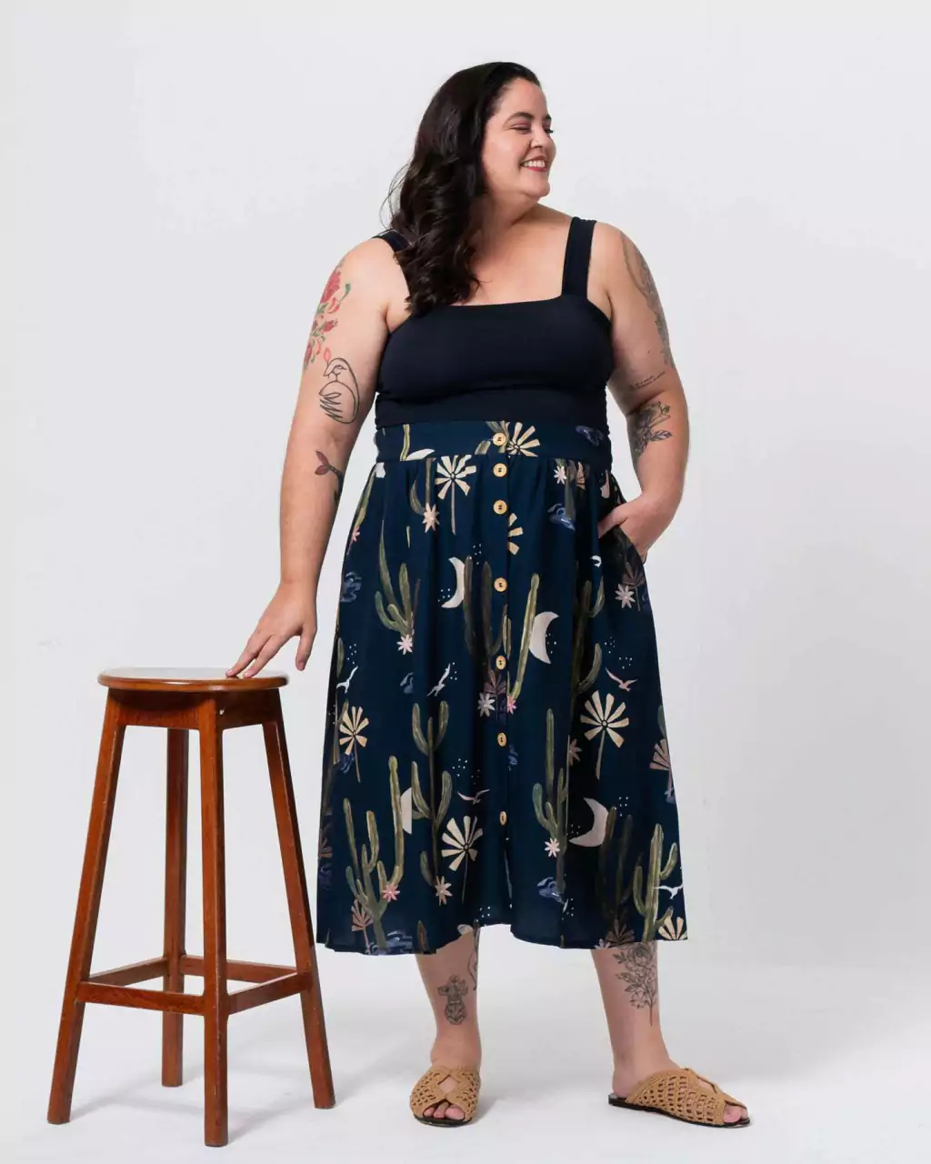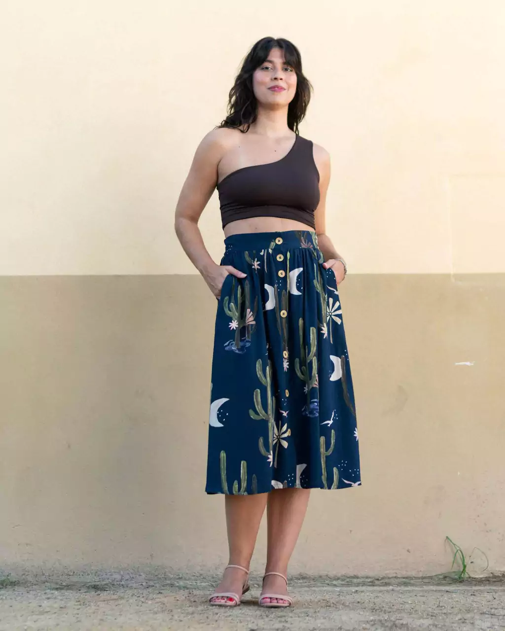 Uma estampa de sucesso em uma das nossa modelagens mais vendidas. A Saia Midi Luar do Sertão chega para completar essa família.