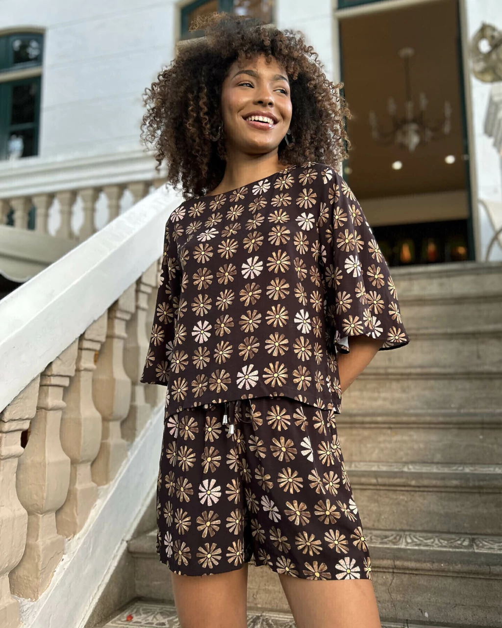 Modelagem confortável e perfeita para o verão, chegou estreando essa nova estampa! Nosso shortinho tem bolsos laterais e um tecido super leve e macio para os dias quentes! Aquele companheiro ideal para a praia ou passeio de domingo!