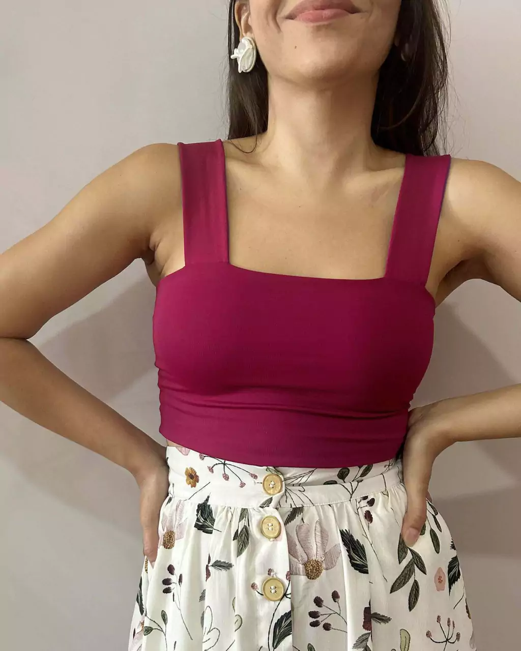 Esta peça pode ser usada em casa, para fazer exercícios, com saias, calças, seu kimono preferido, na praia ou na piscina e até como sutiã para quem não gosta de nada apertando o corpo. É aquela peça coringa que você não vai mais querer tirar.