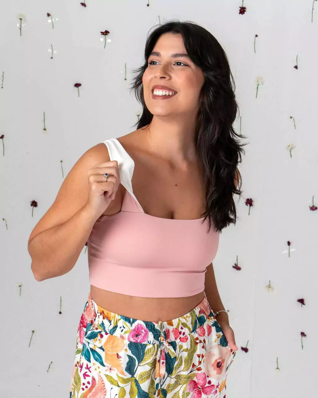 Nosso Top Reto Dupla Face em uma nova cor: rosè + branco, para receber o ano novo.
